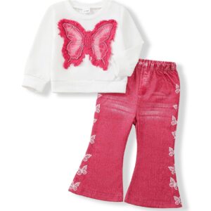 Toddler Baby Girl Clothes Fall Winter Outfits Gifts Sweatshirt Jeans Bell Bottom Pants Set for 12Months-5 Year Girls