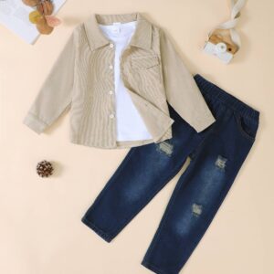 Toddler Boy Clothes Fall Winter Outfits 3Pcs Fashion Flannel Shirts Ripped Jeans Pants Kids Boys Clothing Sets