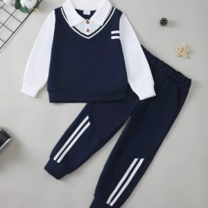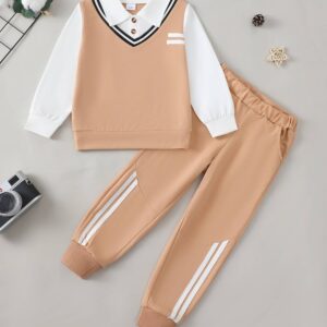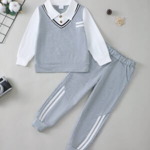 Toddler Boy Clothes Fall Winter Outfits Half Zip Pullover Sweatshirt Pants Set Kids Boys Clothing Set 2T-7T