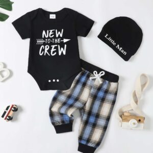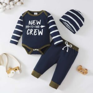 Newborn Infant Baby Boy Clothes Outfits New to The Crew Outfits Long Pants Toddler Baby Boy Clothes Set
