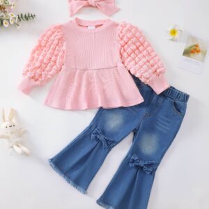 Toddler Baby Girl Clothes Fall Winter Outfit Puff Bubble Sleeve Sweatshirt Denim Bell Bottom Jeans Matching Outfits