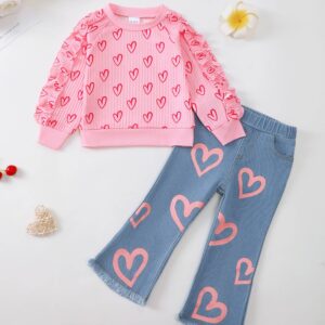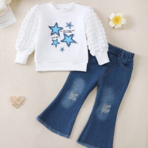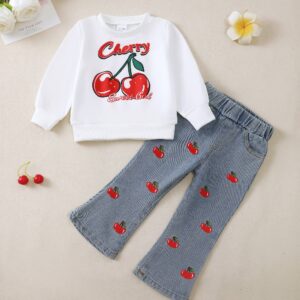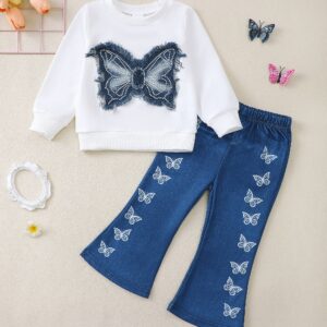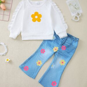 Toddler Baby Girl Clothes Fall Winter Outfits Gifts Sweatshirt Bell Bottom Jeans Pants for 12Months-5 Year Girls