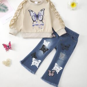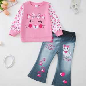 Toddler Baby Girl Clothes Fall Winter Outfits Gifts Sweatshirt Jeans Bell Bottom Pants Set for 12Months-5 Year Girls