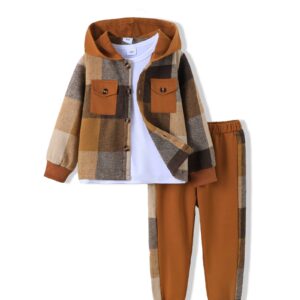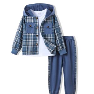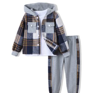 Boys Clothes Fall Winter Outfits, Toddler Kids Button Plaid Hoodie Pockets Sweatpants T-shirt Clothing Set Size 3-7T