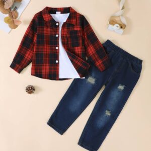 Toddler Boy Clothes Fall Winter Outfits 3Pcs Fashion Flannel Shirts Ripped Jeans Pants Kids Boys Clothing Sets