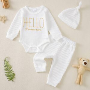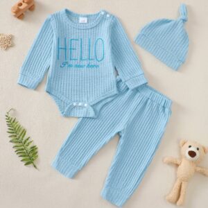 Preemie Newborn Infant Baby Boy Clothes Fall Winter Romper+Pants+Hat Outfits I’m New Here Coming Home Outfit Gifts