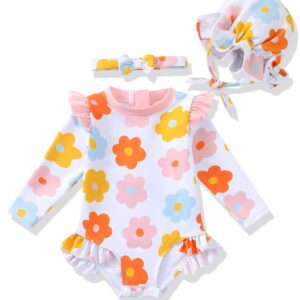 Baby Girls Swimsuit Infant Bathing Suit with Hat Zipper Long Sleeve One-Piece Rash Guard Swimwear for Girl 3Month-3T