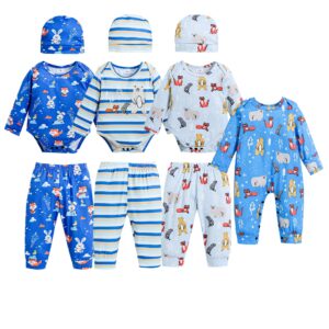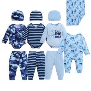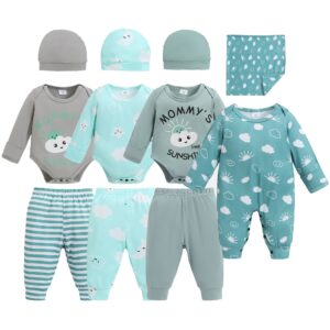 Newborn Baby Boy Clothes Essentials 11-Piece Layette Set with Bodysuits, Pants, Hats, Blanket-Infant Unisex Outfit