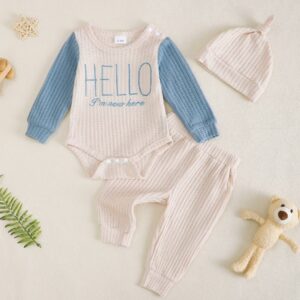 Preemie Newborn Infant Baby Boy Clothes Fall Winter Romper+Pants+Hat Outfits I’m New Here Coming Home Outfit Gifts
