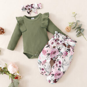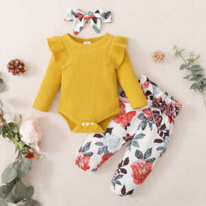 Newborn Infant Baby Girl Clothes Fall Winter Baby Girl Outfits Long Sleeve Romper Top Floral Pant Set
