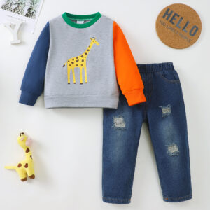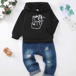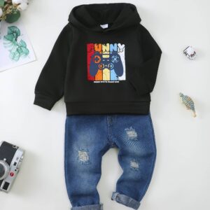 Toddler Infant Baby Boy Clothes Outfit Long Sleeve Pullover Sweatshirt Denim Pants Fall Winter Clothes Set for Baby Boy