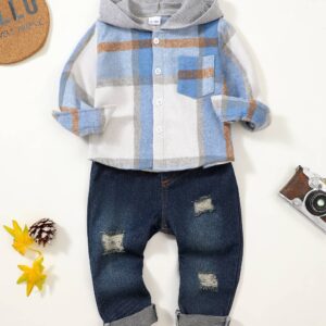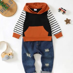 Toddler Infant Baby Boy Clothes Outfit Long Sleeve Hoodie Sweatshirt Denim Pants Fall Winter Clothes Set for Baby Boy