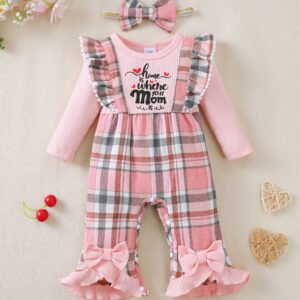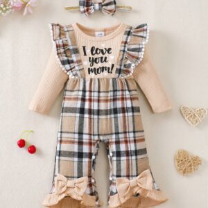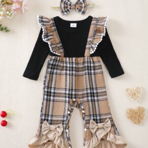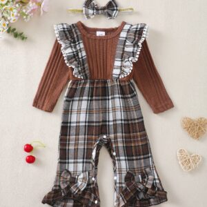 Newborn Baby Girl Clothes Fall Winter Outfit Ribbed Romper Plaid Overalls Jumpsuit Infant Girl Outfits