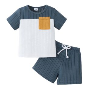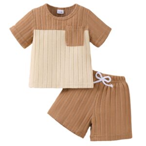 Baby Boy Clothes Toddler Boys Summer Outfits Short Sleeve Pockets Patchwork T-Shirts Elastic Waist Shorts Set