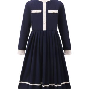 Girls Long Sleeve Fall Winter Dress, Button Knit A Line Casual Princess Dresses Holiday Clothes for Girl 8-12T