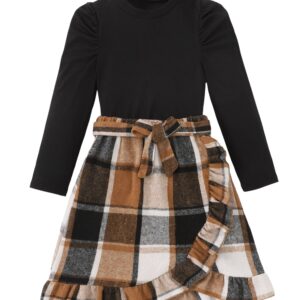 Girls Teen Clothes, Fall Winter Outfits Long Sleeve Ruffle Sleeve Top and Pleated Plaid Mini Skirt Set Size 7-14Y