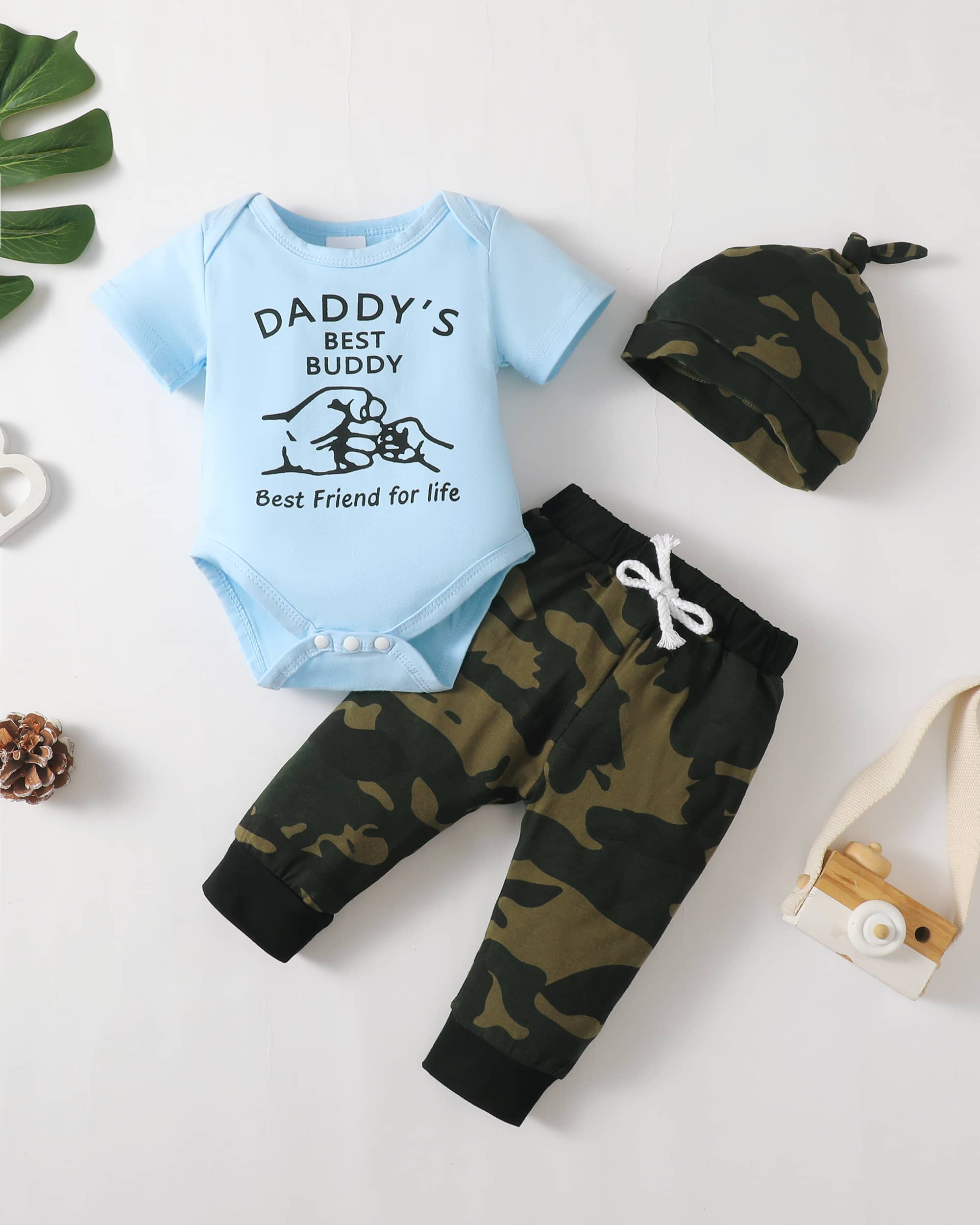 Cute Baby boy Outfits: onepiece romper, pants with elastic waist, headband, 3 pcs shorts sets for baby boys. Occasions – baby boy gifts suitable for indoor, outdoor.