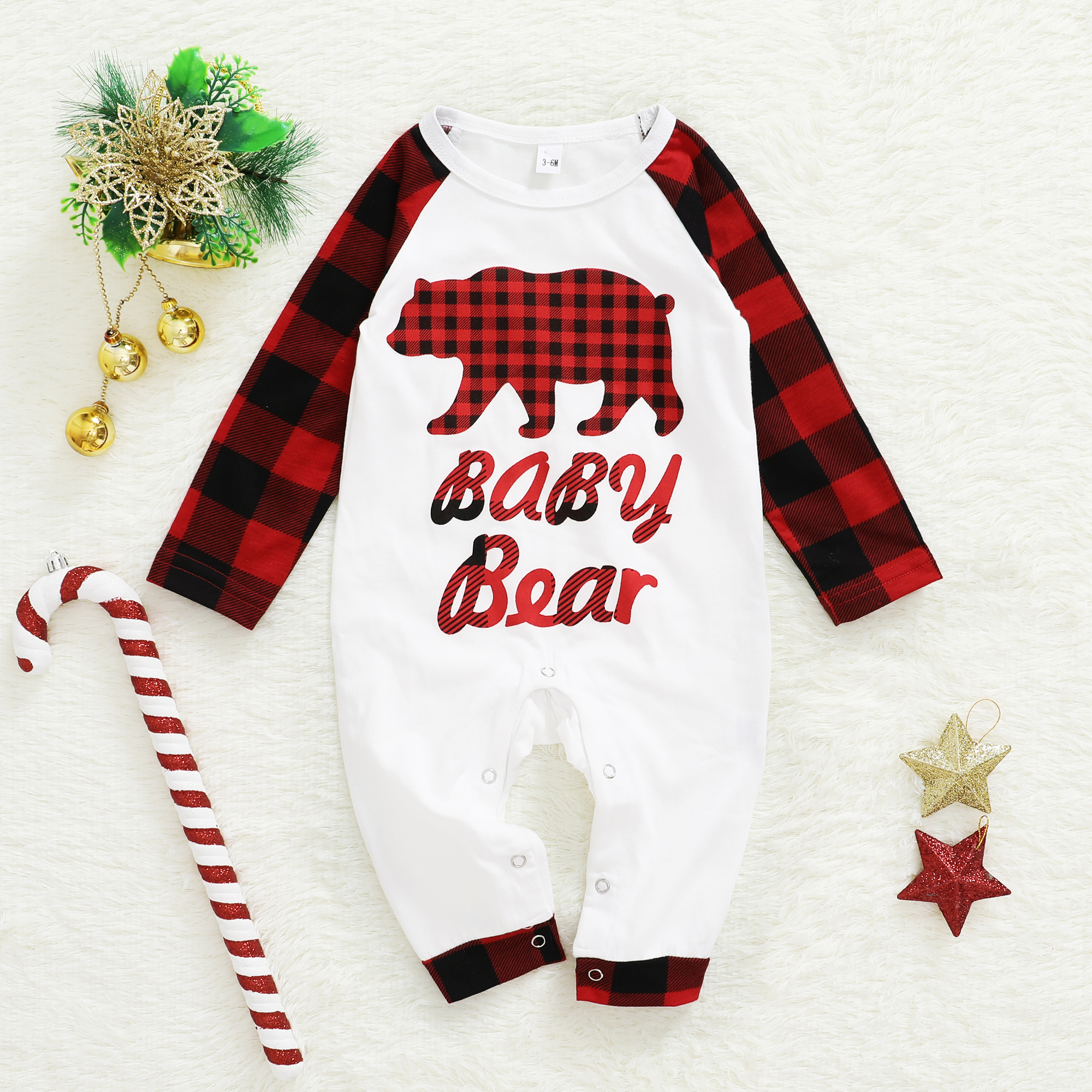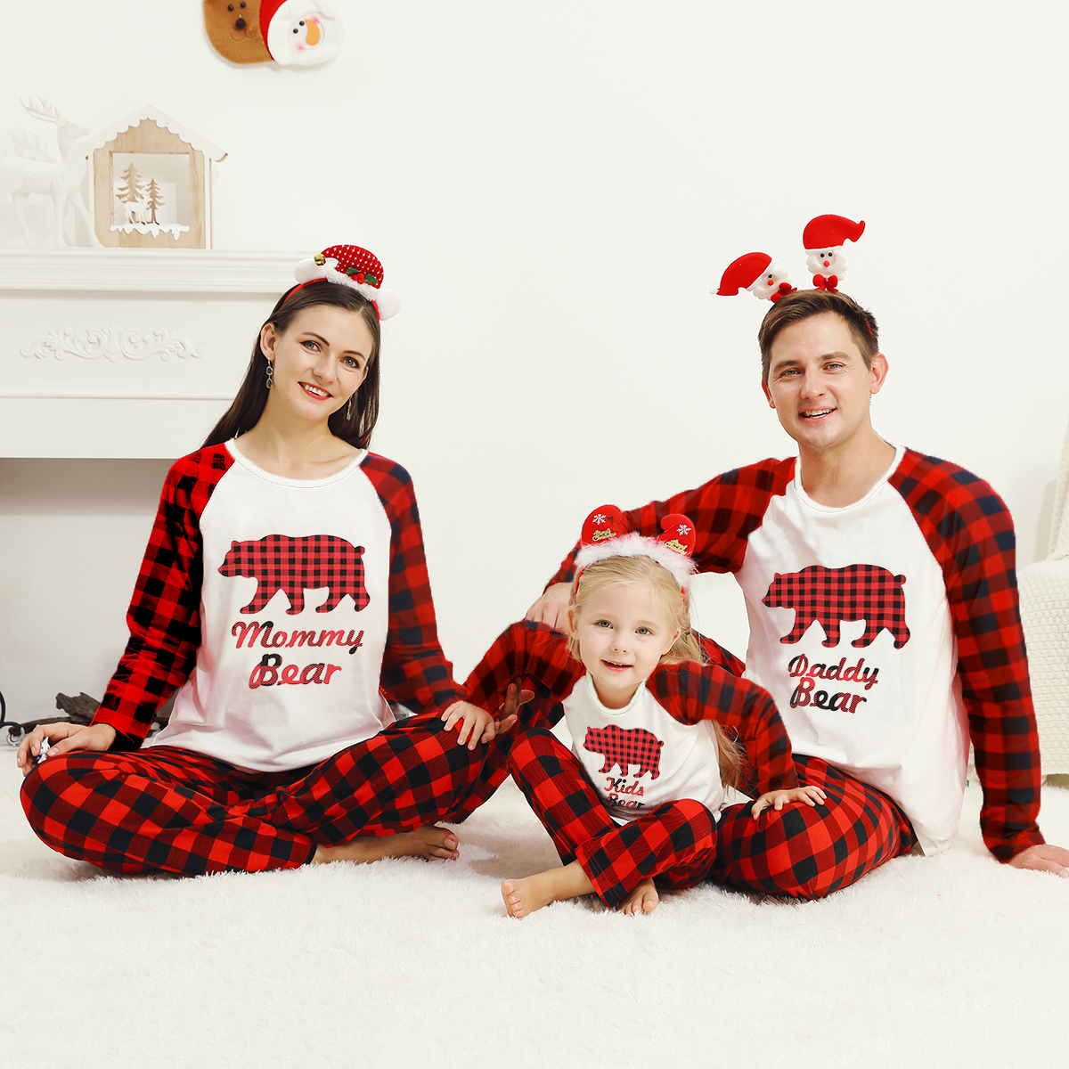 2. Unique Designs—The pattern of bear printed on tops and classic plaid pants.
