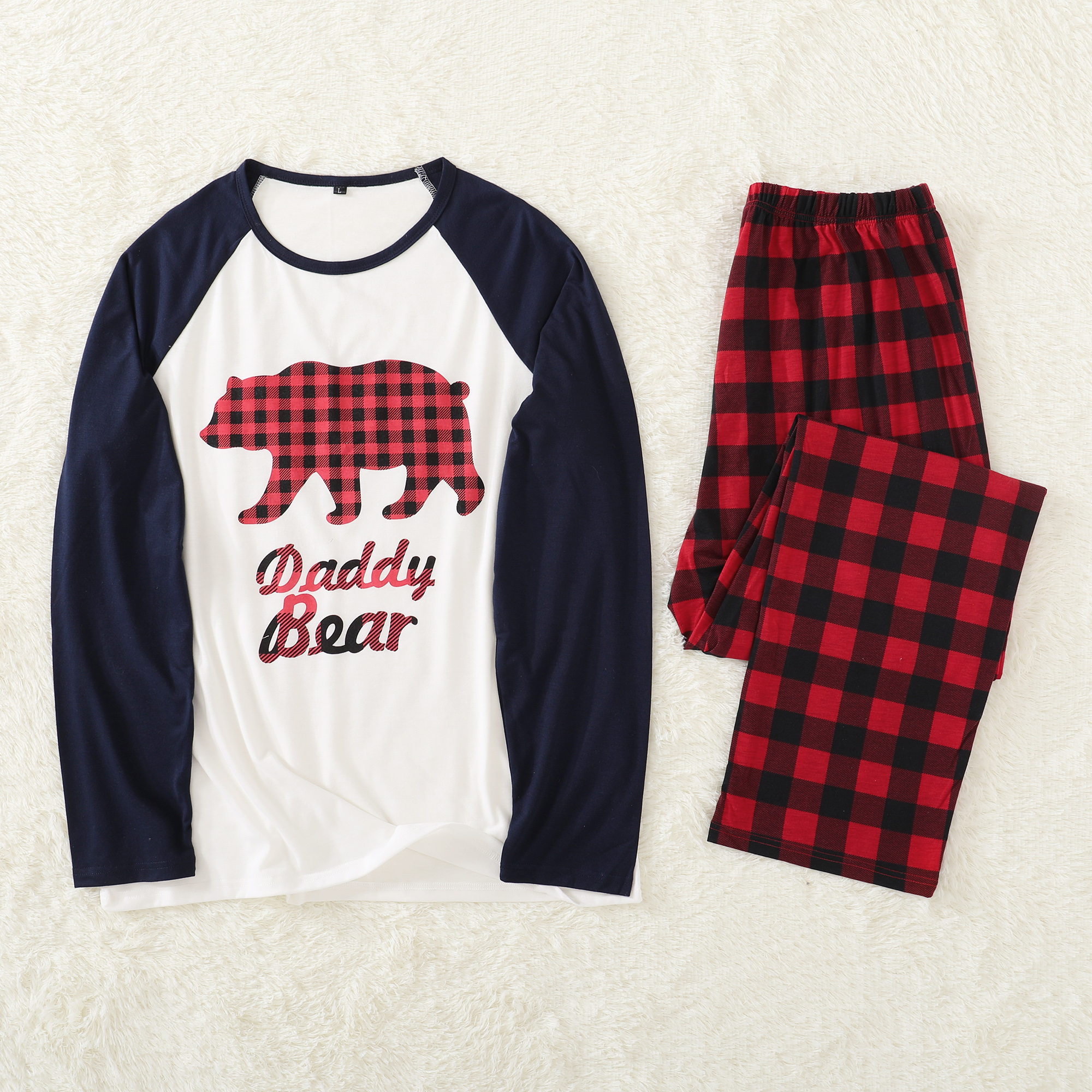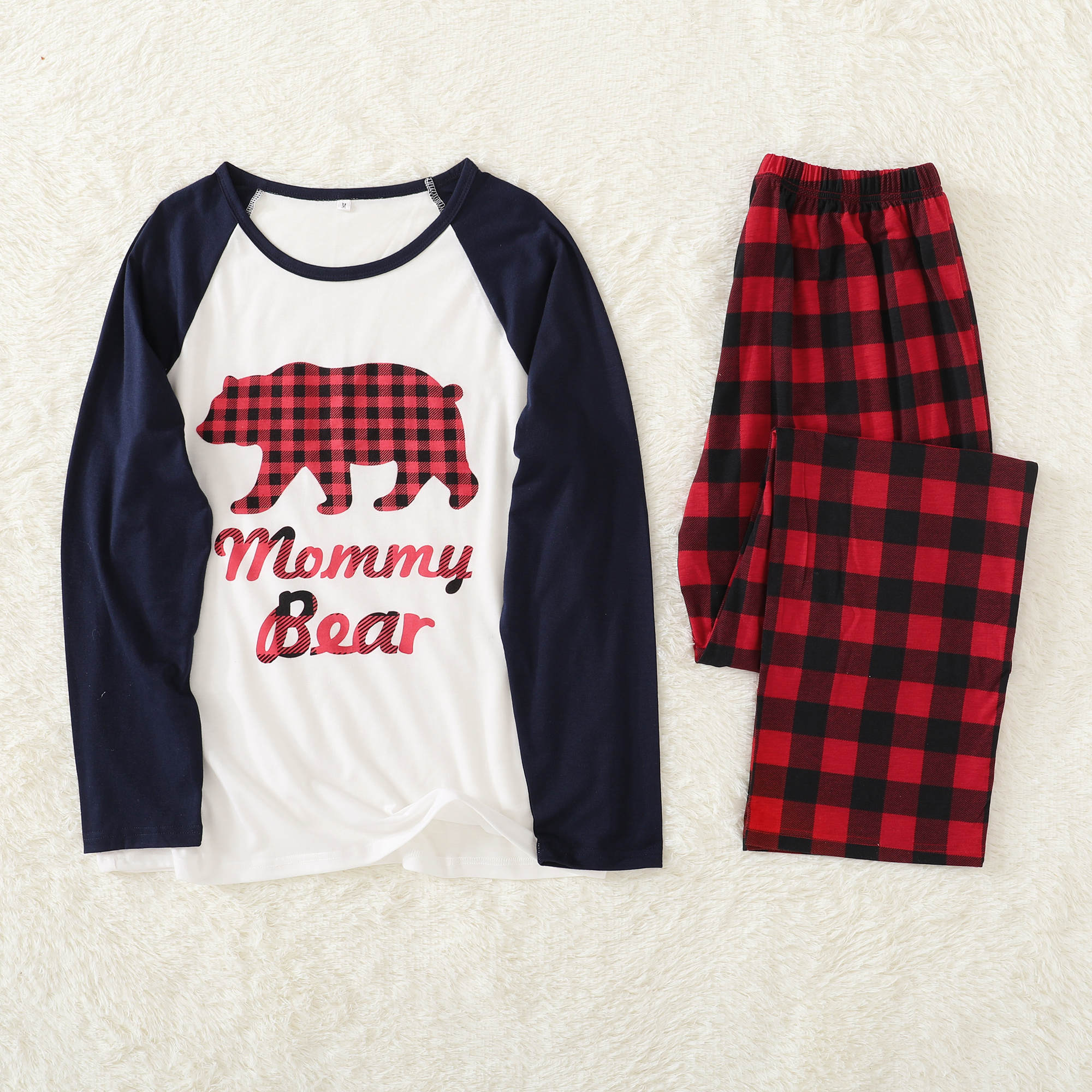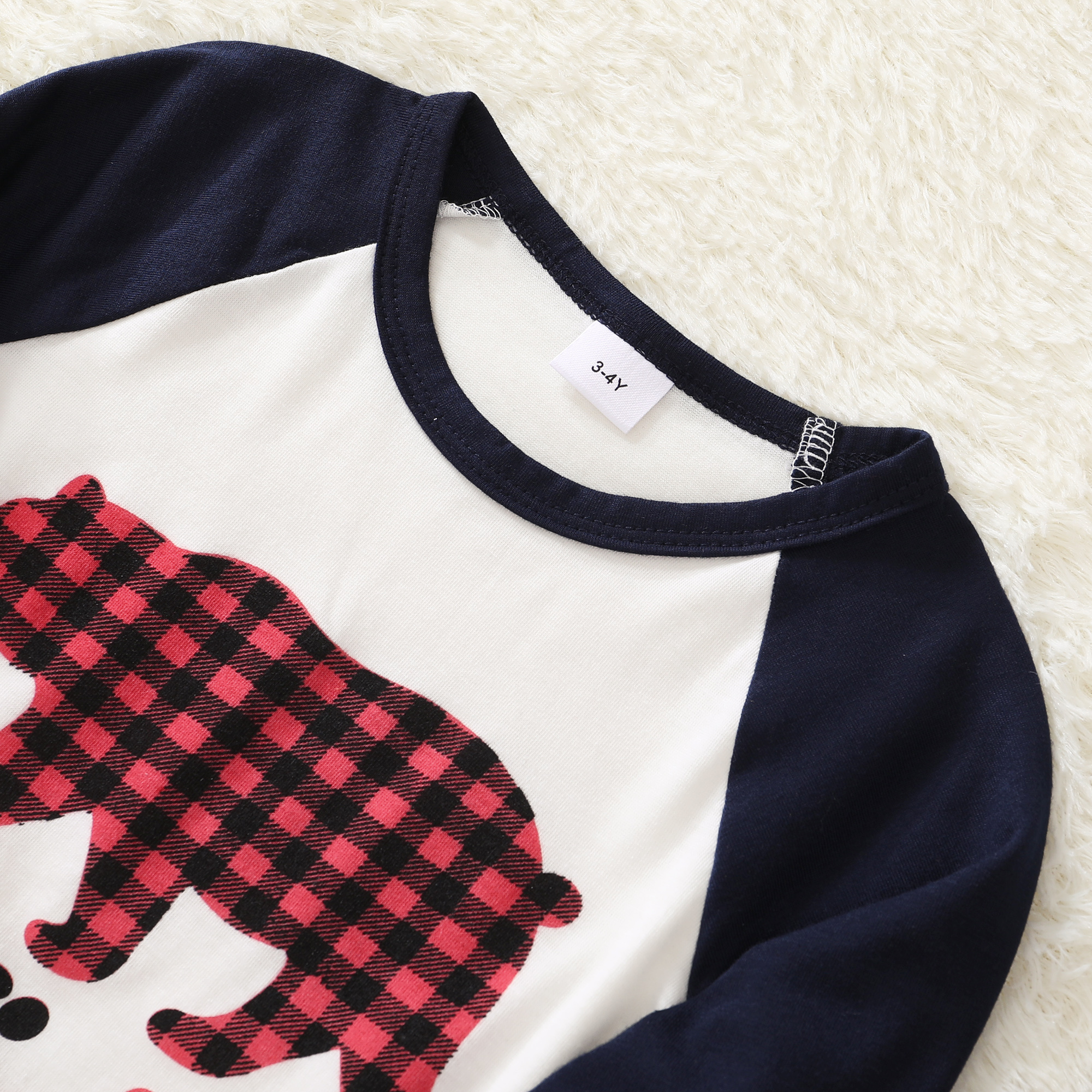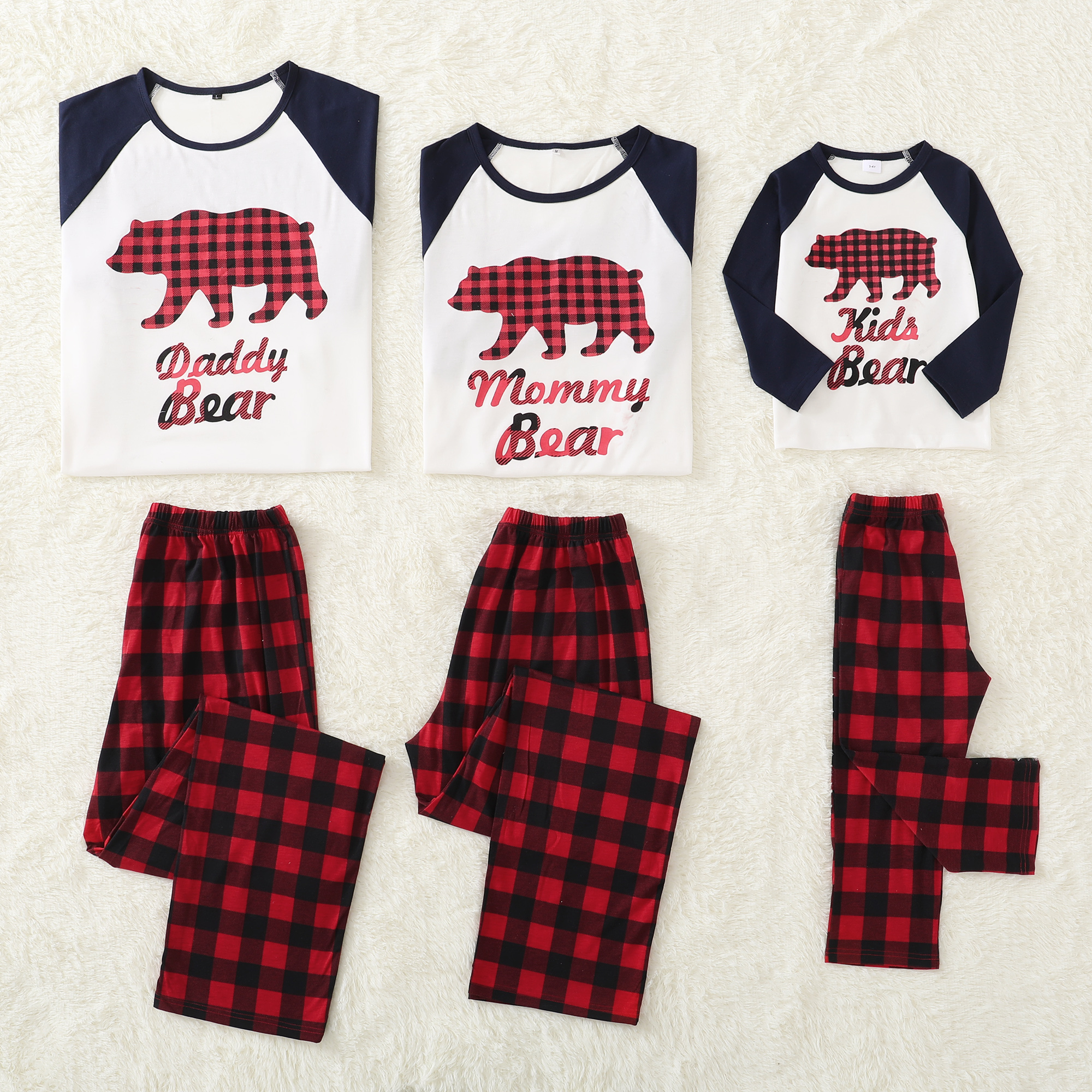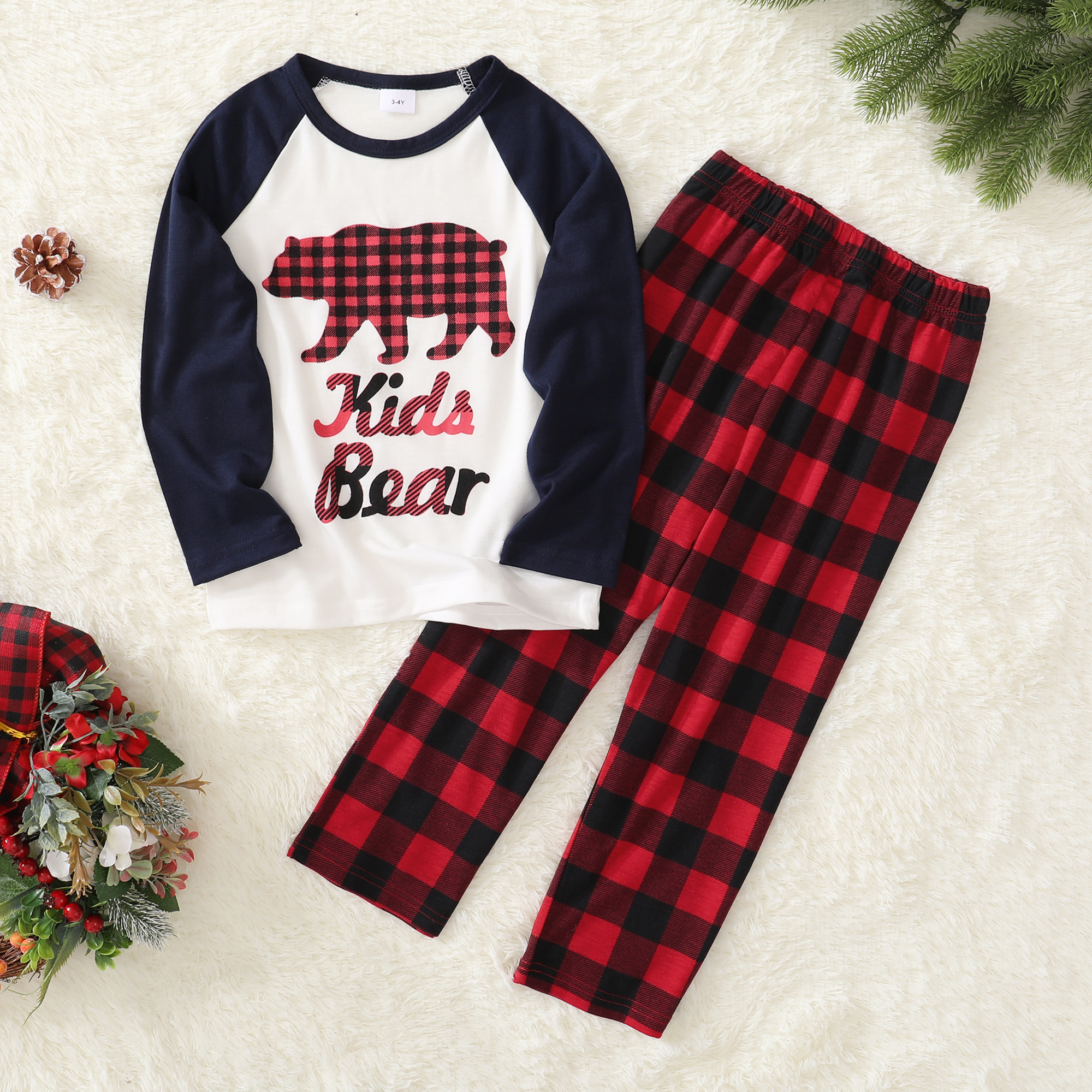 2. Unique Designs—The pattern of bear printed on tops and classic plaid pants.