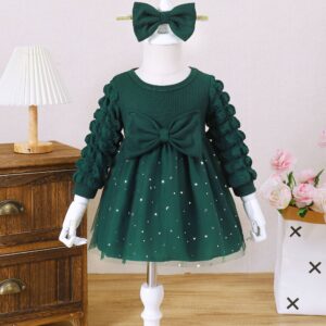 Baby Girl Flower Dress Fall Winter, Puff Sleeve Tutu Dresses Princess Wedding Birthday Party Dresses for Girls 3M-3T