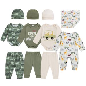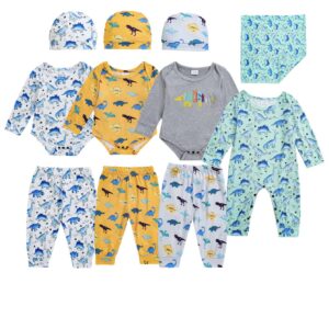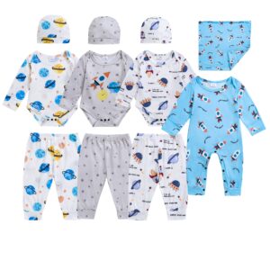 Newborn Baby Boy Clothes Essentials 11-Piece Layette Set with Bodysuits, Pants, Hats, Blanket-Infant Unisex Outfit