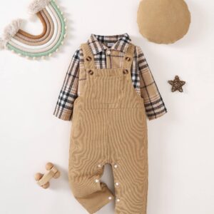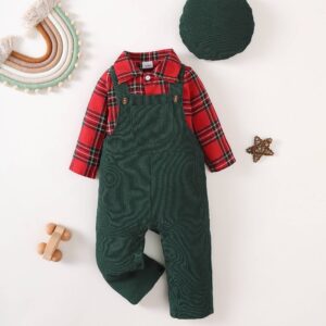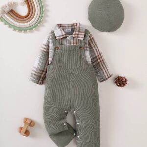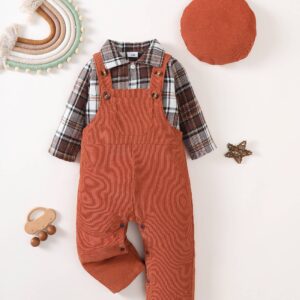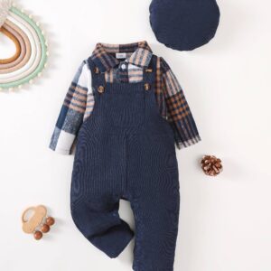 Baby Boy Clothes Flannel Plaid Bodysuit+Corduroy Overalls+Beret Hat 3Pcs Fall Winter Outfits for 3-24 Months Boys